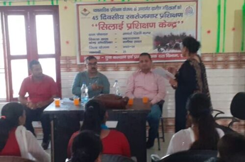 हरिद्वार : बालिकायें प्रशिक्षण में सीखे सिलाई कार्य को अपनी आजीविका का आधार बनाएं। जागरुक एवं हुनरमंद महिला ही समूह, परिवार व समाज को सशक्त करने का माध्यम है। व्यवसायिक प्रशिक्षण योजना के अंतर्गत ग्रामीण महिलाओं को 45 दिवसीय स्वरोजगार प्रशिक्षण के तहत सिलाई प्रशिक्षण दिया गया। ग्राम पंचायत आदर्श टिहरी नगर विकासखंड बहादराबाद में 45 दिवसीय सिलाई प्रशिक्षण का आज समापन किया गया जिसमें ग्राम प्रधान मंजीत खरोला, ब्लॉक प्रमुख प्रतिनिधि बालम सिंह नेगी, पीआरडी जिला मुख्यालय से मुकेश भट्ट जी व क्षेत्रीय युवा कल्याण अधिकारी पूनम मिश्रा शामिल रहे साथ ही आदर्श टिहरी नगर की बालिकाओं द्वारा कार्यक्रम में प्रतिभाग किया गया। समापन अवसर पर ग्राम प्रधान आदर्श टिहरी नगर, ब्लॉक प्रमुख प्रतिनिधि और जिला युवा कल्याण एवं प्रांतीय रक्षक दल से मुकेश भट्ट द्वारा संयुक्त रूप से प्रशिक्षण प्राप्त करने वाली बालिकाओं को प्रमाण पत्र का वितरण किया गया।