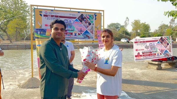 हरिद्वार : अंतरराष्ट्रीय योग दिवस से पूर्व आयोजित अभ्यास कार्यक्रम के अन्तर्गत दक्षिणेश्वर महादेव सती घाट के पावन तट पर भव्य योगाभ्यास सत्र का आयोजन किया गया। कार्यक्रम जिला आयुर्वेदिक एवं यूनानी अधिकारी हरिद्वार डॉ स्वास्तिक सुरेश और नोडल अधिकारी डॉ अवनीश उपाध्याय के नेतृत्व में संचालित किया गया। कामन योगा प्रोटोकॉल के के अनुरूप योग अभ्यास डॉक्टर नवीन कुमार दास और डॉक्टर अश्वनी कौशिक के नेतृत्व में योग अनुदेशक निकुंज उपाध्याय एवं निशा भट्ट द्वारा संपन्न किया गया। इस दौरान अश्वमेध हेल्थ एंड वैलनेस संस्थान की योगाचार्य एवं प्राकृतिक चिकित्सा विशेषज्ञ डॉ रुचिता उपाध्याय की उपस्थिति भी सराहनीय रही।