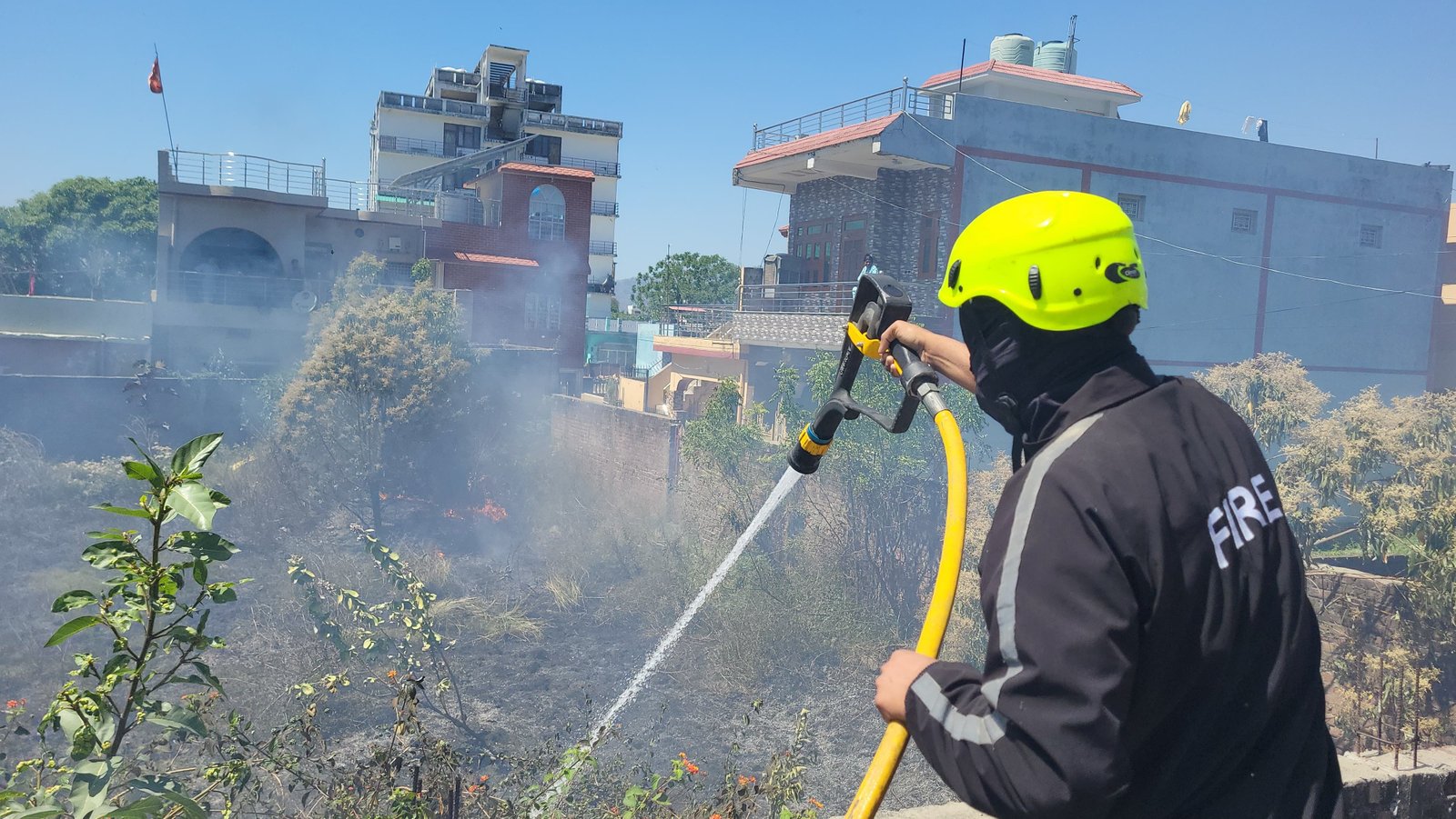 सूचना प्राप्त होते ही फायर यूनिट बिना विलंब किए तत्काल घटनास्थल के लिए रवाना हुई। मौके पर पहुंचने पर पाया गया कि आग विकराल रूप धारण कर नजदीकी घरों की ओर तेजी से बढ़ रही थी, जिससे क्षेत्र में खतरे की स्थिति उत्पन्न हो गई थी। फायर टीम द्वारा त्वरित एवं प्रभावी कार्रवाई करते हुए MFE से पंपिंग कर होज रील के माध्यम से आग बुझाने का कार्य प्रारंभ किया गया।