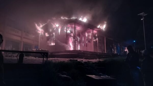गैरसैण (चमोली)। चमोली जिले के गैरसैण स्थित नवोदय विद्यालय के टीन के फैब्रिकेटेड भवन में गुरूवार की तडके पौने चार बजे के लगभग भीषण आग लग गई जिससे भवन के अंदर रखा सामान स्वाहा हो गया। गनिमत यह रही कि इस घटना में किसी प्रकार के किसी के हताहत होने की सूचना नहीं है।