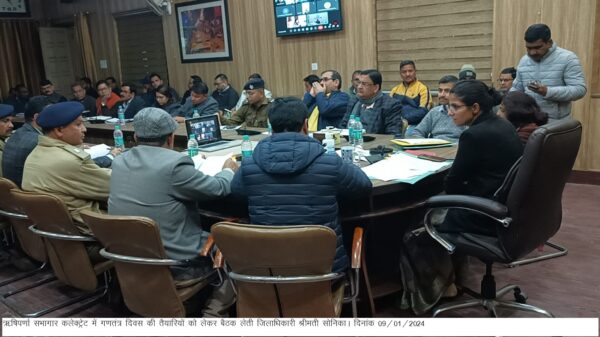 देहरादून : गणतंत्र दिवस की तैयारियों को लेकर जिलाधिकारी सोनिका की अध्यक्षता में ऋषिपर्णा सभागार कलेक्ट्रेट में बैठक आयोजित करते हुए सम्बन्धित विभागों के अधिकारियों को आवश्यक दिशा-निर्देश दिए गए। जिलाधिकारी ने निर्देशित किया कि सभी अधिकारी अपने-2 विभागों के अन्तर्गत किये जाने वाले कार्यों को देख लें तथा समय से कार्यों को पूर्ण करें।