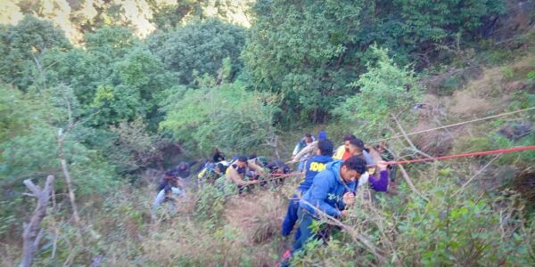 मसूरी : जनपद देहरादून- बार्लोगंज, मसूरी में एक व्यक्ति गिरा खाई में, SDRF के रेस्क्यू कर पहुँचाया अस्पताल। आज 13 दिसंबर 2023 को जिला नियंत्रण कक्ष देहरादून द्वारा SDRF को सूचित किया गया कि बार्लोगंज के पास एक व्यक्ति लगभग 50 मीटर गहरी खाई में गिर गया है। उक्त सूचना मिलते ही सहस्त्रधारा से HC सुशील कुमार के नेतृत्व में SDRF रेस्क्यू टीम तत्काल मौके के लिए रवाना हुई। SDRF रेस्क्यू टीम द्वारा मौके पर पहुँचकर त्वरित कार्यवाही करते हुए खाई में उतरकर घायल व्यक्ति तक पहुंच बनाई। ततपश्चात फायर सर्विस के साथ संयुक्त रेस्क्यू अभियान चलाते हुए घायल व्यक्ति को रोप स्ट्रैचर की सहायता से कड़ी मशक्कत करते हुए मुख्य मार्ग तक पहुँचाकर एम्बुलेंस द्वारा अस्पताल भिजवाया गया।