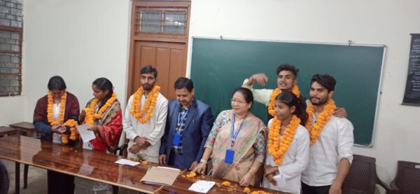 कोटद्वार। राजकीय स्नातकोत्तर महाविद्यालय कोटद्वार में मंगलवार को सम्पन्न हुए छात्रसंघ चुनाव में अध्यक्ष पद पर वंदे मातरम संगठन के अभिषेक अग्रवाल ने एबीवीपी के आयुष त्रिपाठी को हराया। अभिषेक को 496 और आयुष को 376 मत प्राप्त हुए। महासचिव पद पर रोहित प्रजापति ने जीत दर्ज करते हुए पारस नेगी को हराया। सहसचिव दीपक चुने गए जबकि कोषाध्यक्ष स्वाति गैरोला चुनी गई। विश्व विद्यालय प्रतिनिधि खुशी कंडवाल को चुना गया।उपाध्यक्ष पद पर दीक्षा ठाकुर ने अमीषा बुडाकोटी को हराया। दीक्षा को 607 और अमीषा को 331 मत मिले। राजकीय महाविद्यालय कोटद्वार में कड़ी सुरक्षा के बीच छात्र संघ चुनाव के लिए मतदान संपन्न हुआ। छात्र संघ प्रभारी डॉ. देवेंद्र सिंह चौहान ने बताया कि कुल 3465 वोट में से 1138 मतदाताओं ने ही अपने मत का प्रयोग किया। मंगलवार सुबह आठ बजे से ही छात्र-छात्रा मतदान के लिए लाइन में लगने लगे थे। इस दौरान छात्र-छात्राओं के आई कार्ड चैक कर ही उन्हें मतदान के लिए जाने दिया गया।