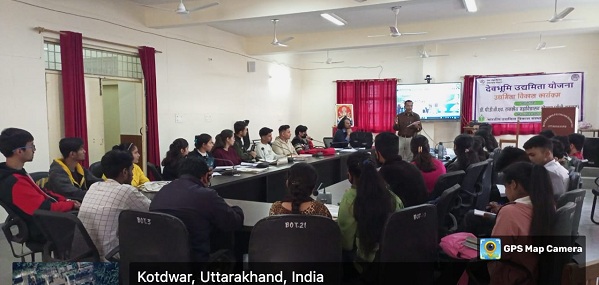 कोटद्वार । राजकीय स्नातकोत्तर महाविद्यालय, कोटद्वार में बुधवार को उद्यमिता विकास कार्यक्रम में छठवें दिन प्रथम तीन सत्रों में देवभूमि उद्यमिता योजना, देहरादून से आए सिद्धार्थ रावत ने छात्र छात्राओं को विभिन्न एक्टिविटीज एवं साइकोमेट्रिक टेस्ट के माध्यम से उपलब्धि प्रेरणा प्रशिक्षण दिया । कार्यक्रम के चतुर्थ सत्र में उद्यमिता विकास संस्थान, अहमदाबाद से आए डॉ दीपक चौहान ने छात्र-छात्राओं को प्रोजेक्ट प्रोफाइल बनाना सिखाया। उन्होंने छात्र-छात्राओं को उद्यमिता एवं स्टार्टअप के लिए प्रोत्साहित किया तथा छात्र छात्राओं से बिजनेस आइडियाज का प्रस्तुतीकरण कराया। कार्यक्रम में देवभूमि उद्यमिता योजना के महाविद्यालय नोडल अधिकारी डॉ एसके गुप्ता ने आए हुए रिसोर्स पर्सनस का स्वागत करते हुए छात्र-छात्राओं से परिचित कराया। इस अवसर पर डॉ सरिता चौहान, डॉ मुकेश रावत एवं देवभूमि उद्यमिता टीम के छात्र सदस्यों अभिषेक नेगी, शीतल प्रजापति, गौरव, क्षितिज नेगी, प्रज्वल बिष्ट ,  पायल , आशिया , आदि ने महत्वपूर्ण योगदान दिया।
