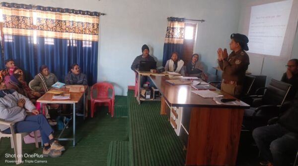 धुमाकोट : थाना धुमाकोट क्षेत्रान्तर्गत नैनीडांडा ब्लॉक खण्ड संसाधन केंद्र में शिक्षकों के चल रहे सात दिवसीय कैंप में नैनीडांडा ब्लॉक के अन्तर्गत आने वाले समस्त राजकीय विद्यालयों के शिक्षकगणों को प्रशिक्षण प्रदान किया जाना जा रहा है जिसके दृष्टिगत थाना धुमाकोट की महिला उपनिरीक्षक भावना भट्ट व पुलिस टीम द्वारा प्रशिक्षण प्राप्त कर रहे 50 से 60 भिन्न-भिन्न विद्यालयों से उपस्थित शिक्षकगणों को पुलिस से सम्बन्धित जानकारी, बाल सुरक्षा, अपराध नियंत्रण, यातायात व्यवस्था, मानव तस्करी, स्कूली बच्चों को नशे से दूर रहने व नशे से होने वाले घातक दुष्परिणामों के सम्बन्ध में विस्तृत जानकारी दी गयी। साथ ही महिलाओं के प्रति होने वाले अपराधों, गुड़ टच बेड टच, साइबर अपराध व सोशल मीडिया प्लेटफोर्म का इस्तेमाल करते समय बरती जानी वाली सावधानियों के विषय में जानकारी देते हुये साइबर अपराध होने पर 1930 एवं आपात सहायता हेतु डायल-112 पर सूचना देन हेतु प्रेरित किया गया।