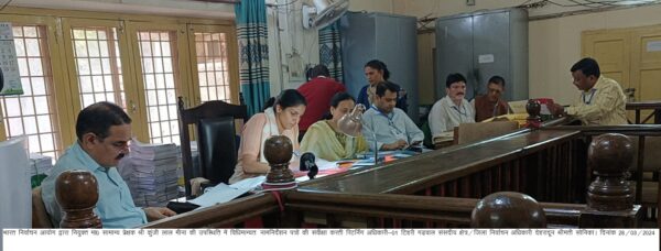 देहरादून : लोकसभा सामान्य निर्वाचन-2024 हेतु 01-टिहरी गढवाल संसदीय क्षेत्र से प्राप्त विधिमान्यतः नामनिर्देशन पत्रों का  सामान्य प्रेक्षक 01-टिहरी गढवाल संसदीय क्षेत्र कुजीं लाल मीना की उपस्थिति में रिटर्निंग अधिकारी-01 टिहरी गढवाल संसदीय क्षेत्र/जिला निर्वाचन अधिकारी देहरादून/जिलाधिकारी सोनिका ने अभ्यर्थियों/प्रतिनिधियों के सम्मुख विधिमान्यतः नामनिर्देशन पत्रों की गहनता से जांच की गई। विधिमान्यतः नामनिर्देशन पत्रों की सूची के अनुसार संवीक्षा करते हुए रिटर्निंग अधिकारी द्वारा  अभ्यार्थी/प्रतिनिधियों  से सम्बन्धित विधिमान्यतः नामनिर्देशन पत्र के सम्बन्ध में आपत्तियां के बारे में पूछा गया, जिस पर उपस्थित किसी भी अभ्यर्थी / प्रतिनिधियों द्वारा कोई आपत्ति दर्ज नही करवाई गई।