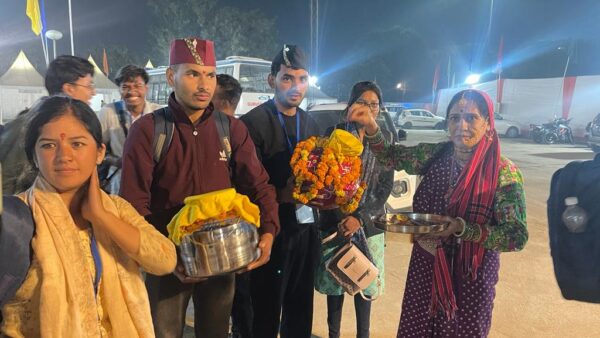 नई दिल्ली : “मेरी माटी मेरा देश” अभियान के अन्तर्गत उत्तराखण्ड से भेजे गए अमृत कलश यात्रा का दल रविवार प्रातः दिल्ली पहुँचा। इस अवसर पर स्थानीय आयुक्त अजय मिश्रा, भारत सरकार, संस्कृति विभाग और स्थानीय आयुक्त कार्यालय, उत्तराखंड सरकार के प्रतिनिधियों ने विधिवत पूजा पाठ के साथ दल का स्वागत किया। “अमृत कलश यात्रा“ में देवभूमि के सुदूरवर्ती अंचलों के 95 विकासखण्डों व 101 नगर – निकायों से 192 तथा नेहरू युवा केंद्र से 166 स्वयंसेवक उत्तराखंड का प्रतिनिधित्व करेंगे। यह कलश यात्रा अमर शहीदों के त्याग एवं बलिदान याद रखने के उद्देश्य से संपूर्ण देशभर में “मेरी माटी मेरा“ देश महाभियान के अंतर्गत चलाई जा रही है। इस यात्रा के तहत अमर शहीदों की जन्मभूमि की मिट्टी को अमृत कलश में दिल्ली स्थित राष्ट्रीय शहीद स्मारक तक पहुंचाया जा रहा है। अमृत कलश यात्रा के तहत देशभर से 7500 कलशों में आने वाली मिट्टी और पौधों को मिलाकर राष्ट्रीय युद्ध स्मारक के पास ’अमृत वाटिका’ बनाई जाएगी। ग़ौरतलब है कि बीते शनिवार को मुख्यमंत्री पुष्कर सिंह धामी की उपस्थिति में हिमालयन संस्कृति केन्द्र, निम्बूवाला, गढ़ी कैंट में ‘मेरी माटी मेरा देश’ कार्यक्रम के अन्तर्गत राज्य स्तरीय ‘अमृत कलश यात्रा’ का आयोजन किया गया था।