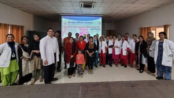 स्तन कैंसर जागरूकता माह पर ब्रेस्ट कैंसर सर्जन डॉ. नीलकमल कुमार ने सेमिनार का आयोजन किया एवं महिलाओं को इस कैंसर के जोखिम कारकों एवं लक्षणों के बारे में विस्तृत जानकारी साझा की। ब्रेस्ट कैंसर सर्जन डॉ. नीलकमल कुमार ने बताया कि ब्रेस्ट में अगर गांठ पाई जाती है तो घबराएं नहीं क्योंकि 10 में से एक गांठ कैंसर की होती है। कैंसर के लक्षण जैसे स्तन में गांठ होना, कांख के नीचे गांठ होना, निप्पल से पानी का स्त्राव होना, स्तन की त्वचा का संतरे के छिलके की तरह हो जाना, यह सब प्रमुख लक्षणों में आते हैं। ऐसे लक्षण होने पर स्तन रोग विशेषज्ञ से तुरन्त सलाह लेने की बात बताई।