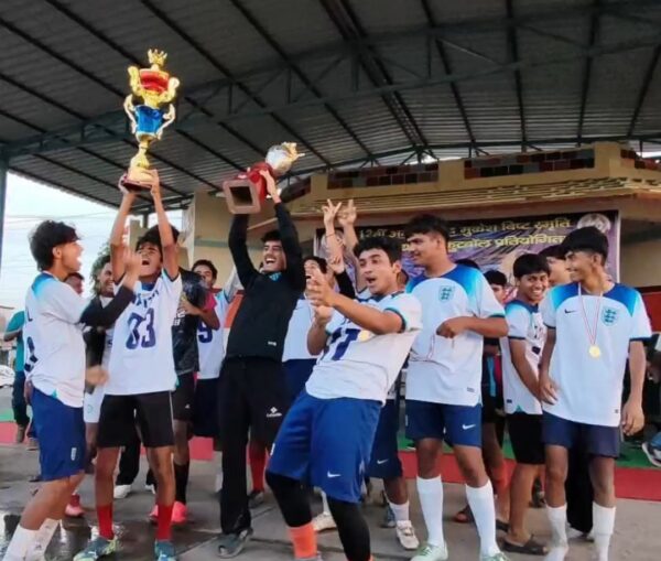 कोटद्वार । बारहवीं शहीद मुकेश बिष्ट स्मृति फुटबॉल प्रतियोगिता बाल भारती स्कूल ने जीत ली है। मंगलवार दोपहर बाद खेले गए फाइनल में बाल भारती स्कूल ने एमकेवीएन स्कूल को 2-1 से हराया। शहीद मुकेश बिष्ट स्मृति संस्था की ओर से आयोजित प्रतियोगिता के फाइनल मैच का शुभारंभ मुख्य अतिथि गिरिराज सिंह रावत एवं प्रकाश कोठारी ने खिलाड़ियों से परिचय प्राप्त कर किया। तत्पश्चात खेले गए मैच के पहले हाफ के 25वें मिनट में बाल भारती स्कूल के खिलाड़ी ने 20 गज की दूरी से गोल कर टीम को बढ़त दिला दी, दूसरे हाफ में एमकेवीएन के खिलाड़ी ने पेनल्टी के जरिये गोल कर स्कोर बराबर कर दिया। इसके बाद दोनों ही टीमों ने गोल करने का भरसक प्रयास किया, लेकिन असफल रहे। इसके बाद अतिरिक्त समय में बाल भारती के शिव कुमार ने निर्णायक गोल कर बाल भारती को प्रतियोगिता का दूसरी बार चैंपियन बना दिया। इस मौके पर सर्वाधिक गोल करने वाले ओम रावत को गोल्डन बूट, आयुष बिष्ट को गोल्डन ग्लव्स, दिव्यांशु नेगी को गोल्डन बॉल सम्मान से नवाजा गया।