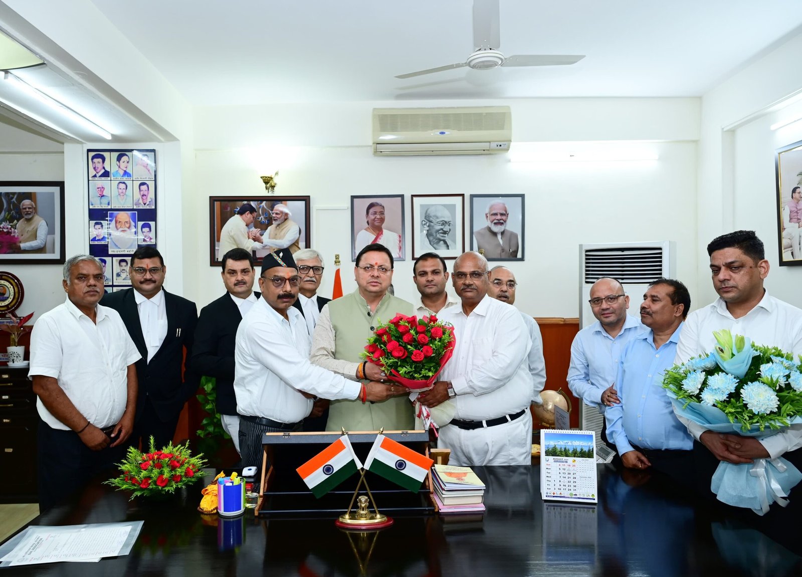 देहरादून : मुख्यमंत्री पुष्कर सिंह धामी से बुधवार को सचिवालय में बार एसोसिएशन, देहरादून के पदाधिकारियों एवं अधिवक्ताओं ने मुलाकात की। इस अवसर पर अध्यक्ष बार एसोसिएशन एडवोकेट राजीव शर्मा, सचिव बार एसोसिएशन एडवोकेट राजबीर सिंह बिष्ट, एडवोकेट एम एम लंबा, एडवोकेट कपिल शर्मा, एडवोकेट योगेंद्र चौहान एवं अन्य लोग मौजूद रहे।