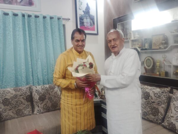 देहरादून : कैबिनेट मंत्री डॉ. प्रेमचंद अग्रवाल ने पूर्व मुख्यमंत्री व राज्यपाल महाराष्ट्र भगत सिंह कोश्यारी से शिष्टाचार भेंट की। इस दौरान होली पर्व की बधाई दी। साथ ही समसामयिक विषयों पर वार्ता हुई। कैबिनेट मंत्री डॉ. प्रेमचंद अग्रवाल ने ईश्वर से प्रार्थना की और कहा कि प्रेम और सौहार्द का यह पर्व आपके जीवन में सुख, समृद्धि और खुशहाली लेकर आए। इस मौके पर रंगों के इस पावन पर्व पर उनके स्वस्थ, सुखद एवं मंगलमय जीवन की कामना की गई।
