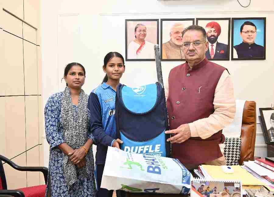 देहरादून: कैबिनेट मंत्री गणेश जोशी ने सोमवार को कैंप कार्यालय में खेलों को बढ़ावा देने तथा खेल प्रेमियों के प्रोत्साहन और उनके उत्साहवर्धन के उद्देश्य के दृष्टिगत देहरादून के प्रेमनगर मिट्ठीबेरी निवासी प्रतिभावान छात्रा शगुन को क्रिकेट किट भेंट की। इस अवसर पर कैबिनेट मंत्री गणेश जोशी ने उनके अग्रिम खेलों के लिए बधाई एवं शुभकामनाएं देते हुए उज्जवल भविष्य की कामना की। ज्ञात हो कि देहरादून के पौंधा स्थित केंब्रेज स्कूल की छात्रा शगुन कक्षा 8वीं में अध्यनरत है, जो क्रिकेट में अपना बेहतर प्रदर्शन कर रही है। शगुन की माता उर्मिला देवी स्कूल में पर्यावरण मित्र का कार्य करती है।