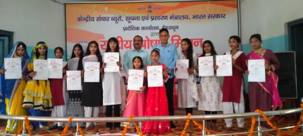 हरिद्वार : भारत सरकार के सूचना प्रसारण मंत्रालय केंद्रीय संचार ब्यूरो शाखा देहरादून के माध्यम से राष्ट्रीय पोषण मिशन के तहत देशभर में मनाई जा रहे पोषण माह के अंतर्गत ज्वालापुर इंटर कॉलेज के प्रांगण में पोषण दृश्य चित्र प्रदर्शनी का आयोजन किया जा रहा था जिसका शुक्रवार को रंगारंग सांस्कृतिक कार्यक्रमों के साथ समापन हुआ सामापन। इस अवसर पर ब्लॉक बहादराबाद के ग्राम अजीतपुर के प्रधान प्रखर कश्यप मुख्य अतिथि, शाहपुर शीतला खेड़ा के ग्राम प्रधान दीपक सैनी, जिया पोता के ग्राम प्रधान कृष्ण पाल विशिष्ट अतिथि के रूप में उपस्थित रहे ।
