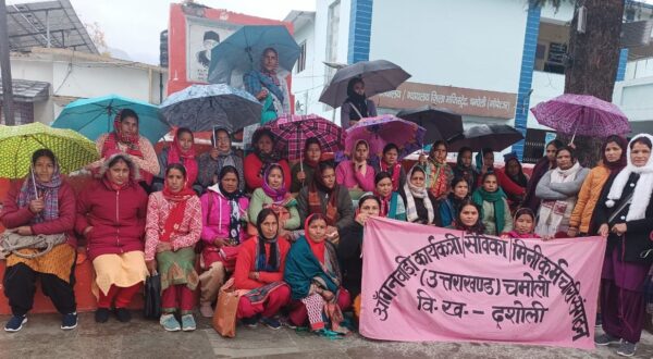 गोपेश्वर/पोखरी (चमोली)। कड़ाके की ठंड और भारी वर्षा के बीच आंगनबाडी कार्यकत्री संगठन का अपनी पांच सूत्रीय मांगों को लेकर चमोली जिला मुख्यालय गोपेश्वर समेत ब्लॉक मुख्यालय और तहसील मुख्यालयों पर धरना जारी रहा। गौरतलब है कि बीते सात दिनों से आंगनबाडी कार्यकत्रियों की ओर से अपनी पांच सूत्रीय मांगों को लेकर जिला मुख्यालय, तहसील और ब्लॉक मुख्यालयों पर धरना दिया जा रहा है। मंगलवार को मौसम ने करवट बदली और पूरा चमोली जिला शीत लहर की चपेट में आ गया है। साथ बारीश भी हो रही है बावजूद इसके आंगनबाडी कार्यकत्रियां धरने पर डटी रही। चमोली जिला मुख्यालय गोपेश्वर में जिलाधिकारी कार्यालय परिसर के सम्मुख आंगनबाडी कार्यकत्रियां बारीश और ठंड के बावजूद छाता लेकर धरने पर बैठी रही। इस मौके पर अनिता नेगी, आशा थपलियाल, उमा चंदोला, राखी चंदोला, मंजू, मनोरमा, जमुना, मुन्नी कुंवर, कमला, कविता आदि मौजूद थी। इधर पोखरी तहसील मुख्यालय पर भी कड़ाके की ठंड में आंगनबाडी कार्यकत्री धरने पर बैठी रही। इस मौके पर ब्लॉक अध्यक्ष सरोजनी नेगी, सुलोचना, मीना देवी, मनोरमा देवी, सरिता देवी, लक्ष्मी देवी, राजेश्वरी देवी, प्रेमा देवी, राधा देवी आदि मौजूद थे।