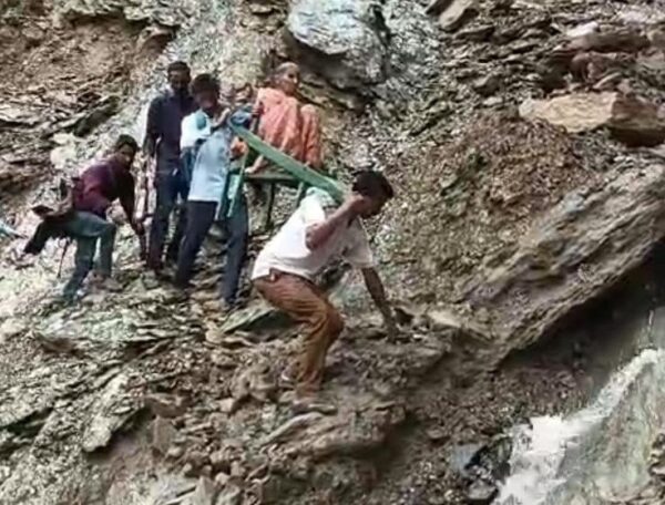 देवाल (चमोली)। ग्रामीण क्षेत्रों में सड़क, स्वास्थ्य और शिक्षा की बदलहाल स्थिति का अनुमान इसी बात से लगाया जा सकता है कि आज भी दूर दराज क्षेत्र के लोग सड़क और स्वास्थ्य सुविधाओं के अभाव में कठिनाई भरा जीवन यापन करने को मजबूर हैं। स्वास्थ्य और सड़क सुविधा के अभाव की एक घटना चमोली जिले के देवाल विकास खंड के अनुसूचित जाति बाहुल्य ऐराठा गांव की है। जहां एक 55 वर्षीय महिला का स्वास्थ्य खराब होने की दशा में बुधवार को ग्रामीण महिला को डंडी के सहारो बीहड़ खतरनाक रास्ते से पैदल चल कर अस्पलात तक लाये।