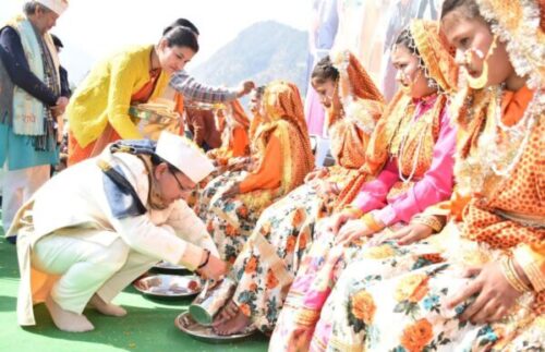 नंदा-गौरा महोत्सव में सीएम ने किया कन्या पूजन।