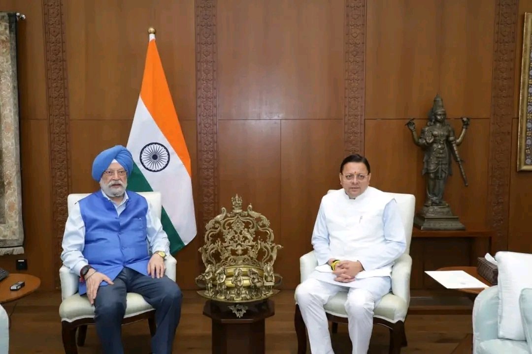 नई दिल्ली : मुख्यमंत्री पुष्कर सिंह धामी ने केंद्रीय पेट्रोलियम एवं प्राकृतिक गैस मंत्री हरदीप सिंह पुरी से नई दिल्ली स्थित कर्तव्य भवन में भेंट कर उत्तराखण्ड की भौगोलिक परिस्थितियों एवं आपदाजन्य संवेदनशीलता के दृष्टिगत विभिन्न महत्वपूर्ण विषयों पर विस्तृत चर्चा की।