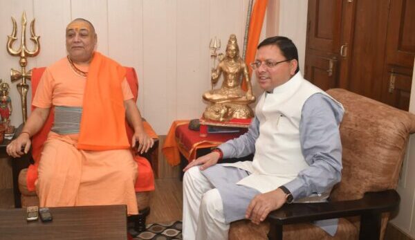 हरिद्वार : मुख्यमंत्री पुष्कर सिंह धामी ने शुक्रवार को कनखल स्थित जगतगुरू आश्रम में जगतगुरू शंकराचार्य स्वामी राजराजेश्वराश्रम से शिष्टाचार भेंट की