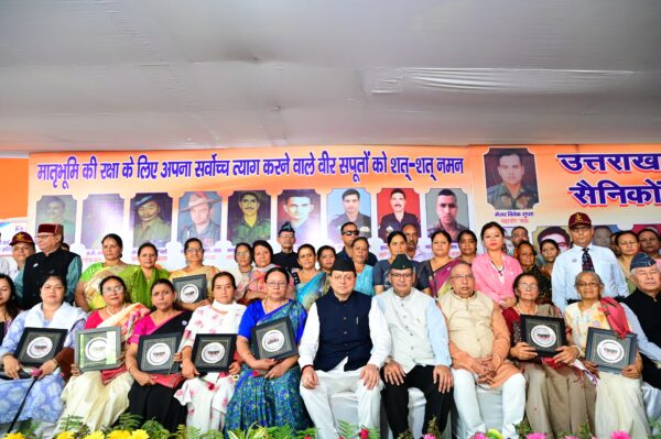 देहरादून : मुख्यमंत्री पुष्कर सिंह धामी ने शनिवार को गांधी पार्क, देहरादून में कारगिल विजय दिवस (शौर्य दिवस) के अवसर पर शहीद स्मारक पर पुष्प चक्र अर्पित कर कारगिल शहीदों को श्रद्धांजलि दी। मुख्यमंत्री ने इस अवसर पर कारगिल शहीदों के परिवारजनों को भी सम्मानित किया।