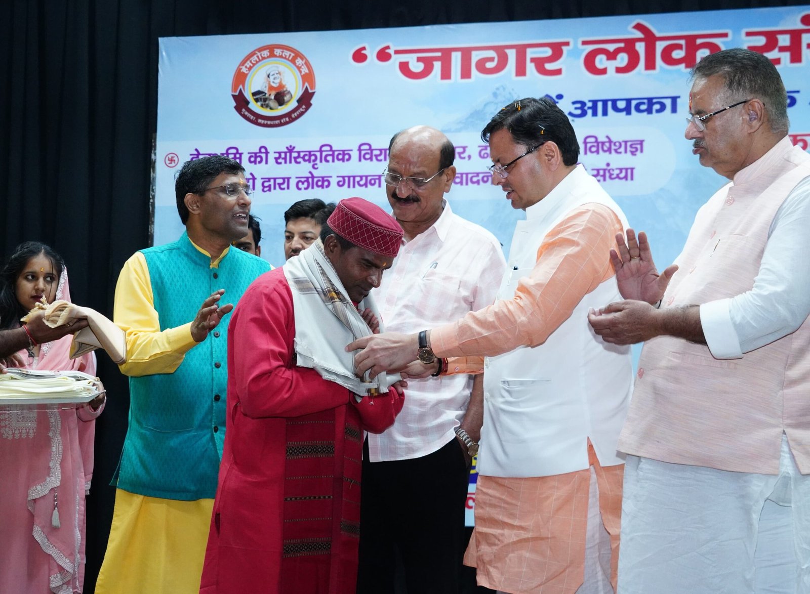 मुख्यमंत्री ने कहा कि राज्य सरकार राज्य की लोककला, लोक संस्कृति की समृद्धि के लिये निरन्तर प्रयासरत है। नवोदित व उदीयमान प्रतिभावान साहित्यकारों को भी सम्मान दिये जाने की परम्परा शुरू की गई है। लोक कलाकारों की सूची तैयार कर उन्हें प्रोत्साहित कर सहायता प्रदान की जा रही है। कोरोना काल में 3200 लोक कलाकारों को पैकेज के रूप में आर्थिक सहायता प्रदान करने का कार्य किया गया है। 60 वर्ष से अधिक आयु के लोक कलाकारों को 03 हजार रू0 मासिक पेंशन दी जा रही है। पौराणिक मेलों को उनके मूल स्वरूप में स्थापित करने के लिये भी मदद दी जा रही है। कलाकारों को बेहतर मंच मिले इसके भी प्रयास किये जा रहे है। जागर गायन शैली एवं प्राचीन परम्परागत लोक कला व लोक संस्कृति को गुरू शिष्य परम्परा के माध्यम से पहचान दिलाने एवं लोक कला व लोक संस्कृति से जुडी लिपियों को प्रकाशित करने तथा आर्ट गैलरी के माध्यम से उन्हें संरक्षित करने का भी कार्य किया जा रहा है।