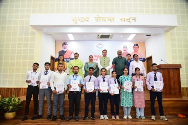 देहरादून : मुख्यमंत्री पुष्कर सिंह धामी ने बुधवार को मुख्यमंत्री आवास स्थित मुख्य सेवक सदन में प्राविधिक शिक्षा विभाग के अन्तर्गत राजकीय पॉलीटेक्निक संस्थानों से चयनित 212 अभ्यर्थियों को नियुक्ति पत्र प्रदान किये। राजकीय पॉलीटेक्निक संस्थानों के अंतिम वर्ष के इन छात्र-छात्राओं को विभिन्न कम्पनियों में नौकरी मिली है। इस वर्ष अभी तक राजकीय पॉलीटेक्निक संस्थानों से 65 प्रतिशत युवाओं को रोजगार मिल चुका है।