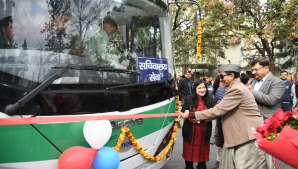 देहरादून : मुख्य सचिव राधा रतूड़ी ने सोमवार को सचिवालय के कार्मिकों के लिए सचिवालय कॉलोनी केदारपुरम से सचिवालय के लिए इलेक्ट्रिक बस सेवा का शुभारम्भ किया। इस बस सेवा के माध्यम से नियमित रूप से सुबह कार्यालय समय पर सचिवालय के कार्मिकों को सचिवालय कॉलोनी केदारपुरम से सुभाष रोड सचिवालय तथा शाम को सचिवालय से सचिवालय कॉलोनी केदारपुरम के लिए यात्रा सुविधा उपलब्ध हो सकेगी। इस अवसर पर सचिवालय कार्मिकों को बधाई देते हुए मुख्य सचिव राधा रतूड़ी ने कहा कि सचिवालय कार्मिकों के लिए इस इलेक्ट्रिक बस सेवा के संचालन से कार्मिक लाभान्वित होंगे तथा साथ ही देहरादून की ट्रैफिक समस्या को कम करने में सहायता मिलेगी। उन्होंने कहा कि ट्रैफिक समस्या के समाधान तथा पर्यावरण पहुलुओं को ध्यान में रखते हुए लोगों की सुविधाओं के लिए सार्वजनिक परिवहन को अधिक से अधिक प्रोत्साहित करने की जरूरत है। इस अवसर पर सचिव दीपेन्द्र कुमार चौधरी तथा सचिवालय के विभिन्न अधिकारी एवं कार्मिक मौजूद रहे।