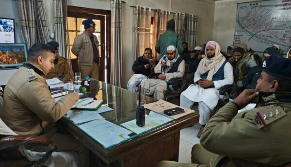 कोतवाली ज्वालापुर परिसर पर आज सीओ ज्वालापुर शांतनु पराशर की अध्यक्षता व कोतवाली ज्वालापुर के अन्य अधिकारियों की मौजूदगी में श्री राम मंदिर विग्रह स्थापना दिवस को लेकर कोतवाली क्षेत्र के समस्त मस्जिदों के इमाम व मुस्लिम धर्म गुरुओं की गोष्टी ली गई। उक्त गोष्ठी में समस्त धर्म गुरुओं व मस्जिदों के इमाम से उक्त दिनांक को शांति व्यवस्था कायम रखने हेतु हिदायत की गई तथा नशे के बढ़ते दुष्प्रभाव पर भी चर्चा की गई। गोष्ठी में मौजूद समस्त व्यक्तियों द्वारा क्षेत्र में शांति व्यवस्था बनाए रखने हेतु पूर्ण सहयोग देने का आश्वासन दिया गया।