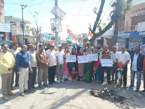 कोटद्वार । गैरसैंण में भू कानून की कमियों को लेकर प्रदर्शन करती जनता को भाजपा प्रदेश अध्यक्ष द्वारा सड़क छाप कहने और विधान सभा में पर्वतीय मूल के लोगों के अपशब्द कहने वाले कैबिनेट मंत्री प्रेमचंद्र अग्रवाल के खिलाफ प्रदेश सरकार द्वारा अब तक कोई कार्रवाई न करने पर कांग्रेस कार्यकर्ताओं में रोष व्याप्त है। इस बात से आक्रोशित कार्यकर्ताओं ने आम जनता को साथ लेकर भाबर के निंबूचौड़ चौराहे पर प्रदर्शन किया और प्रदेश सरकार का पुतला दहन किया।
