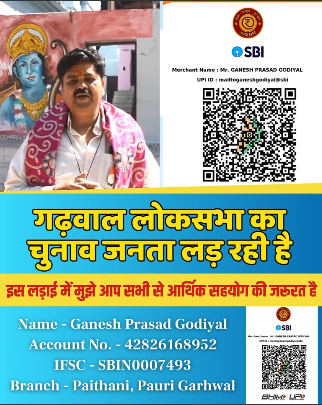 उनका कहना है कि  इस लड़ाई को लड़ने के लिये मुझे आर्थिक तौर पर अपनी महान जनता से सहयोग की जरूरत है। भाजपा की तरह हमारे पास धनबल और बाहुबल नहीं है, मैं ये चुनाव आप लोगों के सहयोग से लड़ रहा हूँ। आप एक, दो, पांच,दस, बीस रुपए तक मेरी मदद कर मुझे अपना सहयोग एवं आशीर्वाद अवश्य देंगे मुझे पूरा विश्वास है।