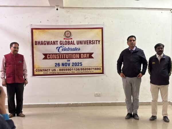 कोटद्वार : भगवंत ग्लोबल यूनिवर्सिटी, कोटद्वार में संविधान दिवस मनाया गया। कार्यक्रम का प्रारम्भ राष्ट्रगीत वन्दे मातरम् से हुआ। विश्वविद्यालय के प्रतिकुलपति प्रो. पीएस राणा ने संविधान पर अपना उद्बोधन दिया। उन्होंने कहा कि संविधान में नीति निर्धारक तत्वों, मौलिक कर्तव्यों, नागरिक अधिकारों का वर्णन है व हमारे देश में संविधान ही श्रेष्ठ है जिसका सबको सम्मान करना चाहिए। उन्होंने इस अवसर पर डॉ. बीआर अम्बेडकर को याद करते हुए उनके योगदान की सराहना की। इस अवसर पर डीन डॉ सरवानन, सहायक कुलसचिव अरुण कुमार, हर्षित शर्मा, विकास पाल, रोहित नन्दन आदि शिक्षक,कर्मचारी,छात्र व छात्राएं उपस्थित थे। मंच का संचालन ईसीए समन्वयक ज्योति नेगी ने किया। विश्वविद्यालय के चेयरमैन डॉ. अनिल सिंह, चेयरपर्सन डॉ. आशा सिंह, डॉ. विभांशु विक्रम सिंह ने संविधान दिवस की बधाई दी।