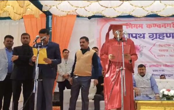 कोटद्वार। नगरनिगम कोटद्वार के मालवीय उद्यान में आयोजित शपथ ग्रहण समारोह में भाजपा के नगर निगम के नवनिर्वाचित महापौर शैलेंद्र सिंह रावत समेत निगम के सभी पार्षदों ने शपथ ग्रहण की। स्थानीय मालवीय उद्यान में आयोजित शपथ ग्रहण समारोह में मुख्य विकास अधिकारी गिरीश चंद गुणवंत द्वारा नगर निगम के नवनिर्वाचित मेयर शैलेंद्र सिंह रावत और सभी 40 वार्डों के पार्षदों को पद एवं गोपनीयता की शपथ दिलवाई गई। शपथ लेने वाले पार्षद जयप्रकाश ध्यानी, अनिल रावत, संजय भंडारी, हिमांशु वर्मा, नईम अहमद, सूरज प्रसाद कान्ती, सुभाष पाण्डेय, जयदीप नौटियाल, प्रवेन्द्र सिंह, नाजमीन, विपिन डोबरियाल, आरती खरक्वाल, रिजवाना परवीन, रीता देवी, रजनी देवी, कविता मित्तल, किरन काला, ज्योति सिंह, नेत्रमोहन असवाल, प्रेमा खन्तवाल, बीना देवी, मनोज शाह, सोनिया नेगी, नीरुवाला खन्तवाल, रितु चमोली, उमेद सिंह नेगी, श्रीधर प्रसाद बेलवाल, प्रमोद कुमार, अमित नेगी, शशिकांत जोशी, सौरव नौडियाल, दीपक पाठक, जगदीश प्रसाद, विवेक शाह, भीम सिंह, राजेन्द्र सिंह, सुखपाल शाह, रजनीश बेबनी, सीता देवी, मनीष ने पार्षद पद की शपथ ली। शपथ ग्रहण समारोह में लैंसडौन विधायक दलीप महंत, वरिष्ठ भाजपा नेता सुमन कोटनाला, गौ सेवा आयोग के अध्यक्ष पंडित राजेंद्र अन्थवाल, नगर उद्योग व्यापार मंडल के अध्यक्ष प्रवीण भाटिया, अंकित अग्रवाल, नगर आयुक्त वैभव गुप्ता सहित भारी संख्या में लोग मौजूद रहे।