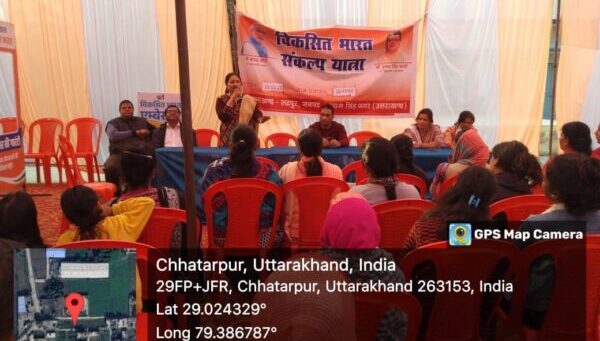 रुद्रपुर : विकासखंड बाजपुर (ग्राम पंचायतें- जोगीपुरा एवं राजपुरा नं-2) एवं सितारगंज (ग्राम पंचायतें- हरैया एवं बिचुवा) एवं रुद्रपुर (ग्राम पंचायतें- गंगापुर लोहरी एवं छतरपुर) गदरपुर ( ग्राम पंचायतें- जाफरपुर एवं लंबाखेड़ा) जसपुर( ग्राम पंचायतें- नादेही एवं पूरनपुर) में लाभार्थीपरक योजनाओं के संतृप्तीकरण हेतु लक्षित लाभार्थियों तक समयबढद्ध रूप से पहुंचाने हेतु विकसित भारत संकल्प यात्रा कार्यक्रम का आयोजन किया गया। समस्त ग्राम पंचायतों में बहुउद्देशीय शिविर के आयोजन में स्वास्थ्य विभाग मत्स्य विभाग, उद्यान विभाग, गन्ना विकास विभाग नलकूप विभाग खाद्य विभाग, पेयजल विभाग,समाज कल्याण विभाग, कृषि विभाग, बाल विकास विभाग द्वारा स्टाल लगाई गई।