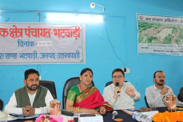 उत्तरकाशी : क्षेत्र पंचायत भटवाड़ी की बैठक में सीमांत विकास खंड भटवाड़ी के विकास को लेकर जन-प्रतिनिधियों एवं अधिकारियों ने विचार-विमर्श कर विकास कार्यों के क्रियान्वयन एवं क्षेत्र की समस्याओ के त्वरित निस्तारण के लिए समन्वित प्रयास करने की प्रतिबद्धता व्यक्त की गई। ब्लॉक प्रमुख विनीता रावत की अध्यक्षता में आयोजित इस बैठक में क्षेत्रीय विधायक सुरेश चौहान, जिलाधिकारी डॉ. मेहरबान सिंह बिष्ट तथा मुख्य विकास अधिकारी जय किशन सहित तमाम विभागों के जिला स्तरीय अधिकारियों ने भी भाग लिया।