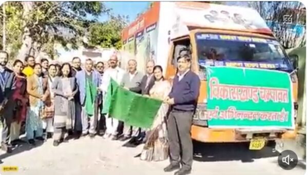 चंपावत : विकसित भारत संकल्प यात्रा वाहन को गुरुवार को कलेक्ट्रेट से जिलाधिकारी नवनीत पाण्डेय, ब्लॉक प्रमुख चंपावत रेखा देवी, विधायक प्रतिनिधि चंपावत प्रकाश तिवारी सहित अन्य जनप्रतिनिधियों गणमान्य नागरिकों ने हरी झंडी दिखाकर जनपद की 313 ग्राम पंचायतों के लिए रवाना किया। इस मौके पर जिलाधिकारी ने बताया कि जिले में भारत सरकार के इस महत्वपूर्ण अभियान को सफलतापूर्वक संपन्न कराए जाने हेतु सभी ग्राम पंचायतों हेतु नोडल अधिकारी बनाए गए हैं। यह सभी नोडल अधिकारी विकसित भारत संकल्प यात्रा वाहन के साथ उन्हें सौपे गए ग्राम पंचायत में प्रतिभाग करेंगे। साथ ही इस दौरान उस क्षेत्र में तैनात विभागीय ग्राम स्तरीय अधिकारी/कर्मचारी भी  ग्राम पंचायत में प्रतिभाग कर नोडल अधिकारी का सहयोग कर विभागीय योजनाओं की जानकारी लोगों को देंगे एवं वंचित पात्र परिवारों का चयन करेंगे और उन्हें लाभान्वित करेंगे।