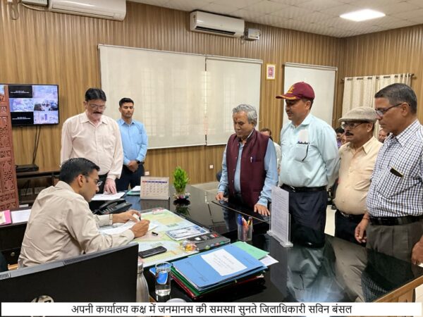 देहरादून : जिलाधिकारी सविन बंसल ने अपने कार्यालय कक्ष में जनमानस की समस्या को सुना। उन्होंने सम्बन्धित विभागों के अधिकारियों को जनमानस की समस्या के निस्तारण के निर्देश दिए। शिकायतों के निस्तारण के सम्बन्ध में दूरभाष पर भी निर्देशित किया गया।