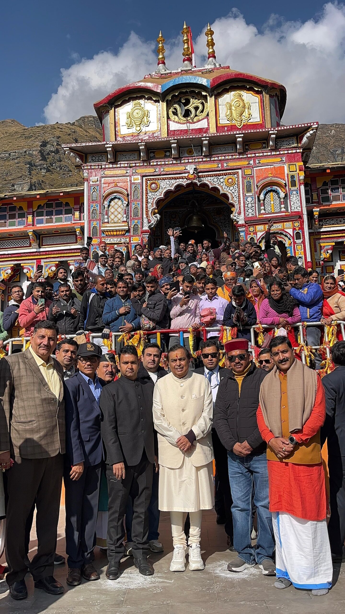 श्री बदरीनाथ/ केदारनाथ धाम : रिलायंस इंडस्ट्रीज के अध्यक्ष एवं प्रबन्ध निदेशक प्रसिद्ध उद्योगपति मुकेश अंबानी ने आज श्री बदरीनाथ धाम तथा श्री केदारनाथ धाम के दर्शन किये। प्रसिद्ध उद्योगपति मुकेश अंबानी पहले श्री बदरीनाथ धाम पहुंचे। उसके पश्चात श्री केदारनाथ धाम दर्शन को पहुंचे। श्री केदारनाथ धाम में श्री बदरीनाथ – केदारनाथ मंदिर समिति (बीकेटीसी) अध्यक्ष अजेंद्र अजय ने उद्योगपति मुकेश अंबानी का स्वागत किया।इससे पहले आज प्रात: 9 बजे मुकेश अंबानी श्री बदरीनाथ धाम पहुंचे सीधे मंदिर में दर्शन को पहुंचे उन्होंने वेदपाठ पूजा संपन्न की।