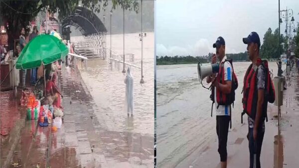 ऋषिकेश में तेज बारिश से गंगा और सहायक नदियां ऊफान पर आ गई है। गंगा घाट और तट जलमग्न हो गए हैं। गंगा का जलस्तर चेतावनी रेखा के पार पहुंच गया है। त्रिवेणी घाट पूरी तरह से जलमग्न हो गया है। इसे देखते हुए प्रशासन की टीम तटीय इलाकों में रहने वाले लोगों को अलर्ट कर रही है। गंगा घाटों और तटों पर जल पुलिस के कर्मचारी तैनात किए गए। तटीय इलाकों में रहने वालों लोगों को सुरक्षित स्थानों पर रहने के लिए मुनादी की गई।