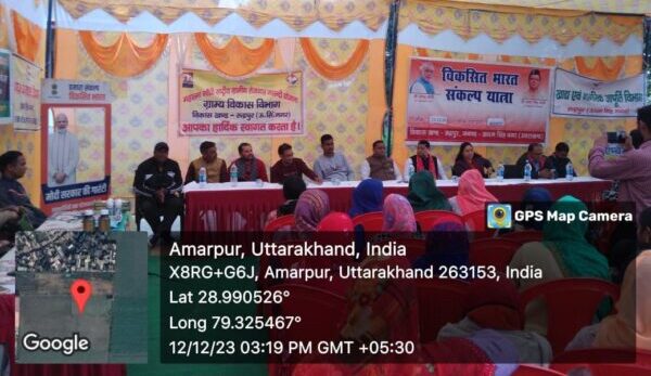 रुद्रपुर : विकासखंड बाजपुर, रुद्रपुर, सितारगंज,जसपुर, गदरपुर की ग्राम पंचायतों-  गोबरा, बैंतखेड़ी, भगवानपुर, बागवाला, बरकी डांडी किशनपुर, आसपुर,रायपुर, जयनगर एवं रायपुर में विभिन्न सरकारी लाभपरक योजनाओं के प्रचार प्रसार लक्षित लाभार्थियों तक समयबद्ध रूप से पहुंचाने हेतु विकसित भारत संकल्प यात्रा कार्यक्रम का आयोजन किया गया। उक्त आयोजित कार्यक्रम में  विभिन्न विभागों द्वारा विभागीय स्टोल लगाए गए, जिसके माध्यम से उपस्थित ग्रामीणों को विभिन्न योजनाओं की जानकारी प्रदान की गई।