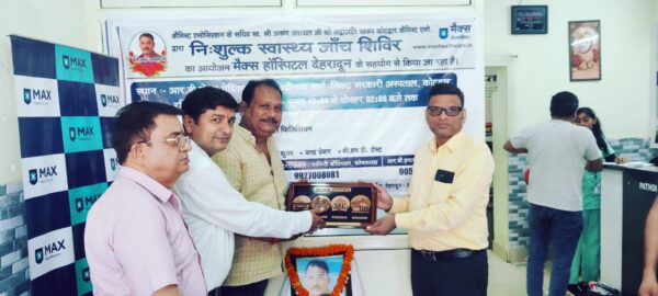 कोटद्वार : कोटद्वार केमिस्ट एसोसिएशन के पूर्व सचिव स्वर्गीय अरुण असवाल को श्रद्धांजलि अर्पित करते हुए कल फ्री मेडिकल कैंप का आयोजन किया गया। केमिस्ट एसोशियेसन के अध्यक्ष विवेक अग्रवाल ने बताया की कैंप में कोषाध्यक्ष पाणीनी बौठियाल, मैक्स हॉस्पिटल से आए डॉ. योगेंद्र सिंह, प्रेम नारायण, सिराज और कांता असवाल द्वारा स्वर्गीय अरुण असवाल के चित्र को माल्यार्पण कर पुष्पांजलि दी गई। इस फ्री हेल्थ कैंप में हृदय रोग विशेषज्ञ, फिजिशियन और हड्डी रोग विशेषज्ञ द्वारा कुल 175 लोगों का परीक्षण व जांच की गई। इस कैंप में कैंप मैनेजर हिमांशु सैनी, ईसीजी में रक्षिता और बीपी, शुगर जांच के सोनी व शैला द्वारा जांच की गई। इस कैंप में केमिस्ट एसोशियेसन कोटद्वार के सदस्य पंकज बिष्ट, रोशन काला, विजय माहेश्वरी, अनिल डबराल, भाग सिंह, दीपक नेगी, धर्मेंद्र गुसाईं, संजय जखमोला सहित अन्य लोग मौजूद रहे।