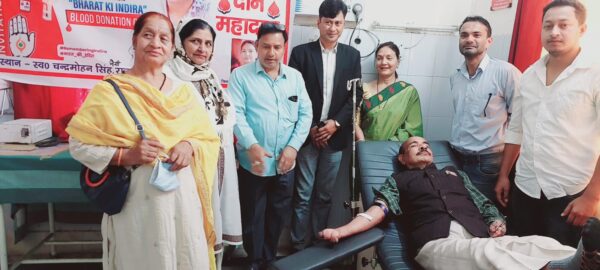 कोटद्वार। अखिल भारतीय महिला कांग्रेस की राष्ट्रीय अध्यक्ष नेटा डिसूजा के आह्वान व प्रदेश अध्यक्ष ज्योति रौतेला के निर्देश पर जिलाध्यक्ष रश्मि पटवाल के नेतृत्व मे महिला कांग्रेस कार्यकर्ताओं ने देश की पूर्व प्रधानमंत्री स्व. इंदिरा गांधी के शहादत दिवस पर मंगलवार को बेस अस्पताल में रक्तदान शिविर का आयोजन किया। शिविर में कांग्रेस कार्यकर्ताओं सहित अन्य रक्तदाताओं ने रक्तदान किया। इस अवसर पर महिला कांग्रेस कार्यकर्ता मौजूद रहीं।