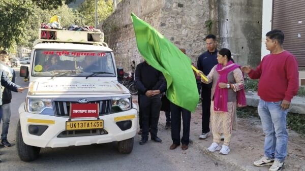 रुद्रप्रयाग : मेरी माटी, मेरा देश अभियान के तहत जिला पंचायत अध्यक्ष अमरदेई शाह ने आज अमृत कलश वाहन को हरी झंडी दिखाकर रवाना किया। कलश यात्रा द्वारा आजादी का अमृत महोत्सव के तहत संस्कृति विभाग के प्रेक्षागृह में राज्य स्तरीय कार्यक्रम में प्रतिभाग किया जाएगा। जिला पंचायत कार्यालय के परिसर में युवा कल्याण व नेहरू युवा केंद्र के संयुक्त तत्वावधान में आयोजित कार्यक्रम के दौरान मिट्टी कलश यात्रा को हरी झंडी दिखाकर रवाना करने के बाद अध्यक्ष जिला पंचायत अमरदेई शाह ने कहा कि जनपद से अमृत कलश वाहन को आज राज्य स्तरीय कार्यक्रम में प्रतिभाग हेतु देहरादून के लिए रवाना किया गया है। उसके पश्चात् दिल्ली में आयोजित कलश यात्रा कार्यक्रम में प्रतिभाग करेगी। इस अवसर पर जिला युवा कल्याण एवं प्रांतीय रक्षक दल अधिकारी शरत सिंह भंडारी, समन्वयक नेहरू युवा केंद्र राहुल डबराल, क्षेत्रीय युवा कल्याण अधिकारी ऊखीमठ मनोज कुमार सहित अन्य अधिकारी व कर्मचारी मौजूद रहे।