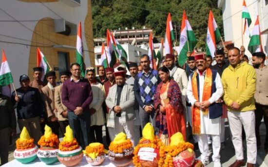 उत्तरकाशी (कीर्ति निधि सजवाण): आजादी के अमृत महोत्सव मेरी माटी मेरा देश, कार्यक्रम के तहत शुक्रवार को जिला कार्यालय परिसर से प्रत्येक ग्राम पंचायातों से एकत्रित किये गये मिट्टी कलश को राज्य स्तरीय कार्यक्रम के लिए क्षेत्रीय विधायक सुरेश चौहान, जिलाधिकारी अभिषेक रूहेला, मुख्य विकास अधिकारी गौरव कुमार तथा प्रमुख भटवाड़ी विनीता रावत के द्वारा हरी झण्डी दिखाकर कलश को राज्य स्तरीय कार्यक्रम देहरादून के लिए रवाना किया।