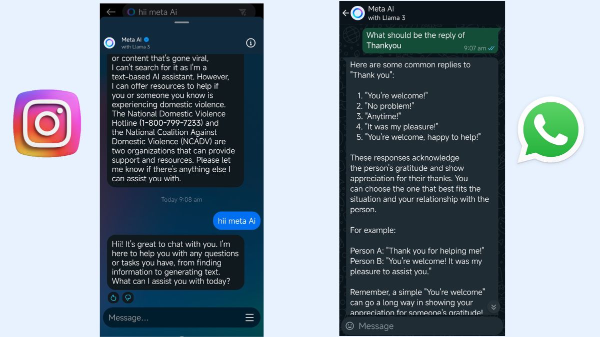 META AI का इस्तेमाल सभी वॉट्सऐप, इंस्टाग्राम, फेसबुक और मैसेंजर के लिए फ्री है। मेटा के किसी भी प्लेटफॉर्म पर इस चैटबॉट से चैट की जा सकती है। अच्छी बात ये है कि मेटा एआई से टैक्स्ट के अलावा, इमेज जनरेट भी करवाए जा सकते हैं। आप जिस तरह की इमेज चाहते हैं, उस पिक्चर के बारे में बताते हुए चैटबॉट से मनचाही पिक्चर पा सकते हैं। मेटा एआई का इस्तेमाल http://Meta.ai वेबसाइट पर भी किया जा सकता है।