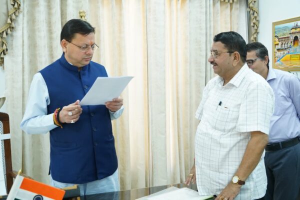 देहरादून : मुख्यमंत्री पुष्कर सिंह धामी से कैम्प कार्यालय में रायपुर विधानसभा क्षेत्र से विधायक उमेश शर्मा काउ ने शिष्टाचार भेंट की।