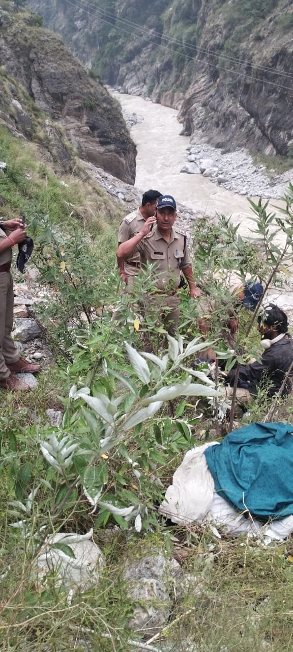 चमोली। बुधवार को शाम करीब 1800 बजे थानाध्यक्ष गोविन्द घाट को सूचना मिली कि तैया पुल के पास एक मोटर साइकिल पर पत्थर गिरने से मोटर साइकिल सवार दो युवक खाई में गिर गए है। सूचना पर थाना गोविंदघाट से पुलिस बल, एसडीआरएफ के साथ गुरुद्वारा एंबुलेंस,108 को सूचित करते हुए तत्काल मौके पर पहुंचा और रेस्क्यू कार्य प्रारंभ किया गया । मौके पर एक मोटर साइकिल संख्या HR 02AN0272 सुपर स्प्लेंडर क्षतिग्रस्त अवस्था में रोड किनारे पड़ी हुई मिली जिसके पास पत्थर भी पड़े हुए हैं दोनों मोटर साइकिल सवार सड़क से करीब 50 फीट नीचे खाई में अलकनंदा नदी के किनारे गम्भीर रूप से घायल अवस्था में मिले जिन्हें तत्काल एसडीआरएफ की मदद से खाई से निकाल कर अस्पताल भिजवाया गया जहां डॉक्टर ने दोनों को मृत घोषित कर दिया। प्रत्यक्षदर्शी परिचितों द्वारा बताया गया कि वह 6 साथी 3 मोटर साइकिलो से श्री बद्रीनाथ से वापस लौट रहे थे कि अचानक उनके साथी की मोटर साइकिल में पहाड़ी से पत्थर गिर गया। परिजनों को घटना की जानकारी दी गई है। शवों के पंचायतनामा व आवश्यक कार्यवाही जारी है।