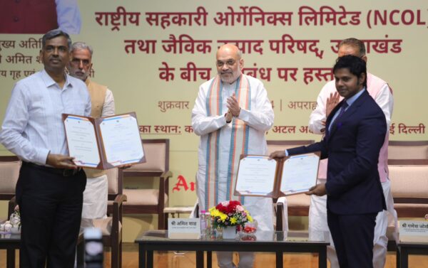 नई दिल्ली : केन्द्रीय गृह एवं सहकारिता मंत्री अमित शाह की उपस्थिति में राष्ट्रीय सहकारी ऑर्गेनिक्स लिमिटेड (NCOL) एवं जैविक उत्पाद परिषद, उत्तराखंड के बीच एक अनुबंध पर आज नई दिल्ली में हस्ताक्षर हुए। इस अवसर पर केन्द्रीय सहकारिता राज्य मंत्री श्री कृष्ण पाल गुर्जर, उत्तराखंड सरकार के कृषि एवं किसान कल्याण मंत्री गणेश जोशी और केन्द्रीय सहकारिता मंत्रालय के सचिव डॉ. आशीष कुमार भूटानी सहित अनेक गणमान्य व्यक्ति उपस्थित थे।