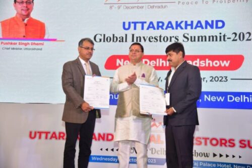 नई दिल्ली : मुख्यमंत्री पुष्कर सिंह धामी की उपस्थिति में बुधवार को नई दिल्ली में ग्लोबल इन्वेस्टर समिट 2023 के रोड शो के अवसर पर उत्तराखण्ड सरकार और जे एस डब्लयू नियो एनर्जी लिमिटेड के मध्य 15 हजार करोड़ का MOU किया गया। MOU के तहत अल्मोड़ा में 1500 मेगावाट के 2 पम्प स्टोरेज का विकास किया जाएगा | इसके साथ ही मुख्यमंत्री पुष्कर सिंह धामी ने उत्तराखण्ड में पंप स्टोरेज प्लांट, सीमेंट, स्पोर्ट, ट्रेनिंग सेंटर, पेयजल, कुमाऊ के मंदिरों (मानसखंड मंदिर माला को CSR के तहत ) पुन:र्द्धार व सौंदर्यकरण के क्षेत्र में सहयोग की अपेक्षा की।