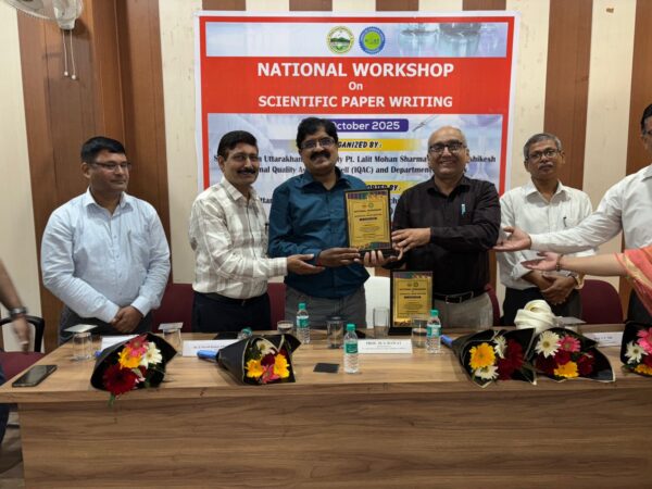 ऋषिकेश : उत्तराखंड राज्य विज्ञान एवं प्रौद्योगिकी परिषद (यूकास्ट) के तत्वावधान में आज 14 अगस्त 2025 को पंडित ललित मोहन शर्मा श्रीदेव सुमन उत्तराखंड विश्वविद्यालय परिसर ऋषिकेश में आंतरिक गुणवत्ता आश्वासन प्रकोष्ठ व वनस्पति विज्ञान के द्वारा “वैज्ञानिक शोध पत्र लेखन” विषय पर एकदिवसीय राष्ट्रीय कार्यशाला का आयोजन किया गया। इसका मुख्य उद्देश्य वैज्ञानिक पत्र लेखन विषय पर शोधकर्ताओं व छात्रों की रुचि को बढ़ावा देकर उनके वैज्ञानिक विचारों को प्रोत्साहित करना था।