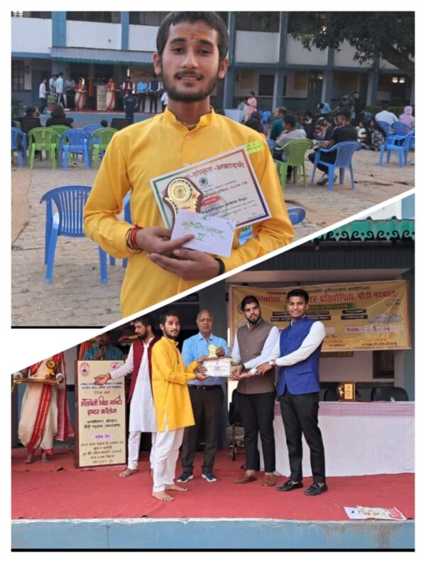 उत्तराखंड संस्कृत अकादमी हरिद्वार द्वारा आयोजित खंड स्तरीय एवं जनपद स्तरीय प्रतियोगिताओं में विजयी छात्र छात्राओं को प्रशस्ति पत्र, धनराशि एवं स्मृति चिन्ह प्रदान किए गए। संस्कृत विभाग के प्राध्यापकों के अथक सहयोग एवं प्रयास के द्वारा नवीन बिष्ट ने जनपद स्तर पर 27 विकास खंडों के विद्यालयों एवं संस्कृत महाविद्यालयों के लगभग 40 छात्रों के मध्य में संस्कृत श्लोकोच्चारण में द्वितीय स्थान प्राप्त कर संस्कृत अकादमी का ही नहीं अपितु राजकीय स्नातकोत्तर महाविद्यालय कोटद्वार के संस्कृत विभाग को भी गौरान्वित किया । महाविद्यालय के प्राचार्य प्रोफेसर डीएस नेगी ने खंड स्तरीय समूह गान प्रतियोगिता में तृतीय स्थान एवं श्लोकोच्चारण में द्वितीय स्थान प्राप्त करने वाले तथा जनपद स्तर पर भी द्वितीय स्थान प्राप्त करने वाले छात्र नवीन बिष्ट को, साथ ही संस्कृत समूह नृत्य में प्रतिभाग करने वाले छात्र छात्राओं को बधाई दी, तथा संस्कृत विभाग के विभाग प्रभारी डॉक्टर अरुणिमा, प्राध्यापक डॉ मनोरथ प्रसाद नौगाई एवं डॉ प्रियम अग्रवाल को शुभाशीष देते हुए संस्कृत विभाग को निरंतर अग्रसर होने की प्रेरणा दी।