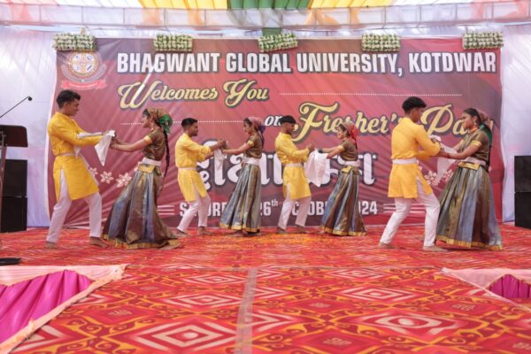 कोटद्वार : भाबर स्थित भगवंत ग्लोबल विश्वविद्यालय में नवागंतुक विद्यार्थी समारोह का आयोजन किया गया, जिसमें आकर्षक प्रस्तुतियां दी गई। कार्यक्रम का शुभारंभ मुख्य अतिथि डॉ. प्रवीण कुमार मुख्य चिकित्साधिकारी पौड़ी, विशिष्ट अतिथि जया बलूनी अपर पुलिस अधीक्षक कोटद्वार, भगवंत ग्रुप के सदस्य डॉ. विभांशु विक्रम सिंह प्रबन्ध निदेशक बैक्सिल फार्मा, विश्वविद्यालय के प्रति -कुलपति प्रो. पी.एस. राणा व ए.एस. कैंतुरा द्वारा दीप प्रज्वलित कर किया गया। विश्वविद्यालय के प्रति कुलपति,डीन व सहा. कुलसचिव द्वारा अतिथियों का पुष्प गुच्छ व स्मृति चिन्ह भेंट कर स्वागत किया गया।